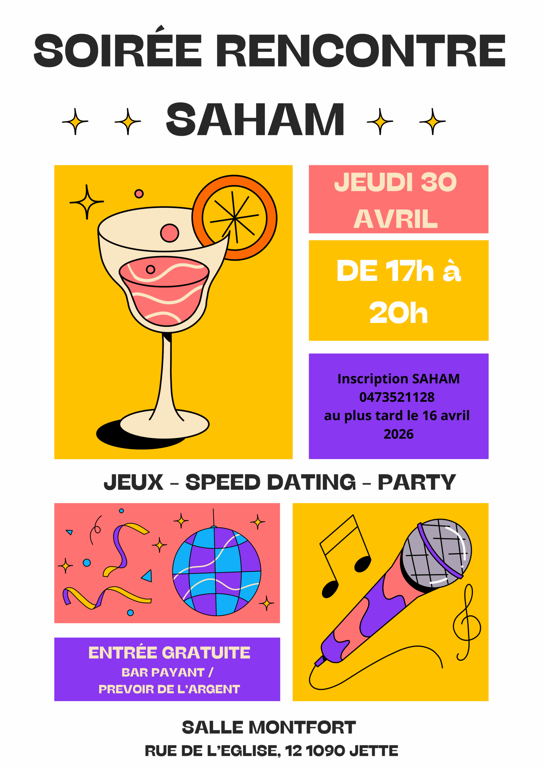 Le SAHAM organise une soirée de rencontre ! C'est une soirée parfaite pour faire des rencontres, Diverses activités seront proposées (jeux en bois, speed dating, danse) ☺️ Il y aura aussi un stand Toc toc toc, pour présenter le site !   Quand ? Le jeudi 30 avril de 17h à 20h.   Où ? […]